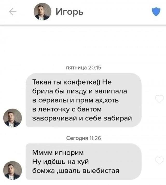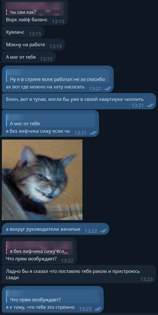 чет представил как эти двое будут ВЕРТЕТЬ друг друга через телеграм, один с хуем в руке другая без лифака