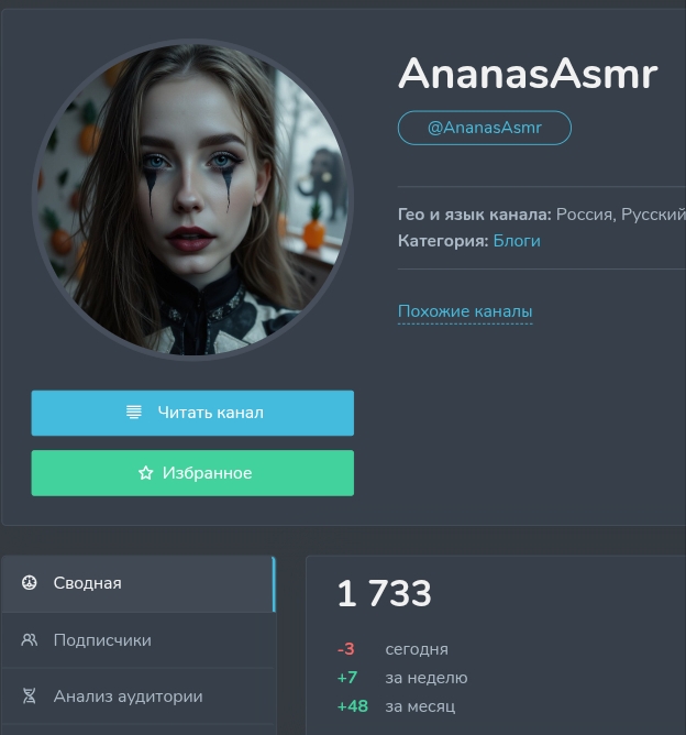 Смотрите какую ламповую няшу я вам нашёл. Тянка делает збс, видосов немного но всё что есть - всё годнота. Из интересного: • Имеет диплом фельдшера, отработала полгода за 20к в месяц и ливнула в АСМР • На стримах система заказов тригеров за твич поинты, по сути - бесплатно • Присутствует чувство юмора и отсутствие ЧСВ • Сигны уникальны и делаются не на отъебись Ссылки: • https://www.youtube.com/@AnanasAsmr - видео, их немного но они хороши • t.me/ananasasmr - телега с расписанием стримов и редкими фото • twitch.tv/ananasasmr - твич, стримы 5 раз в неделю по ~3 часа вечером • https://boosty.to/ananasasmr - фотки, судя по всему на него забили