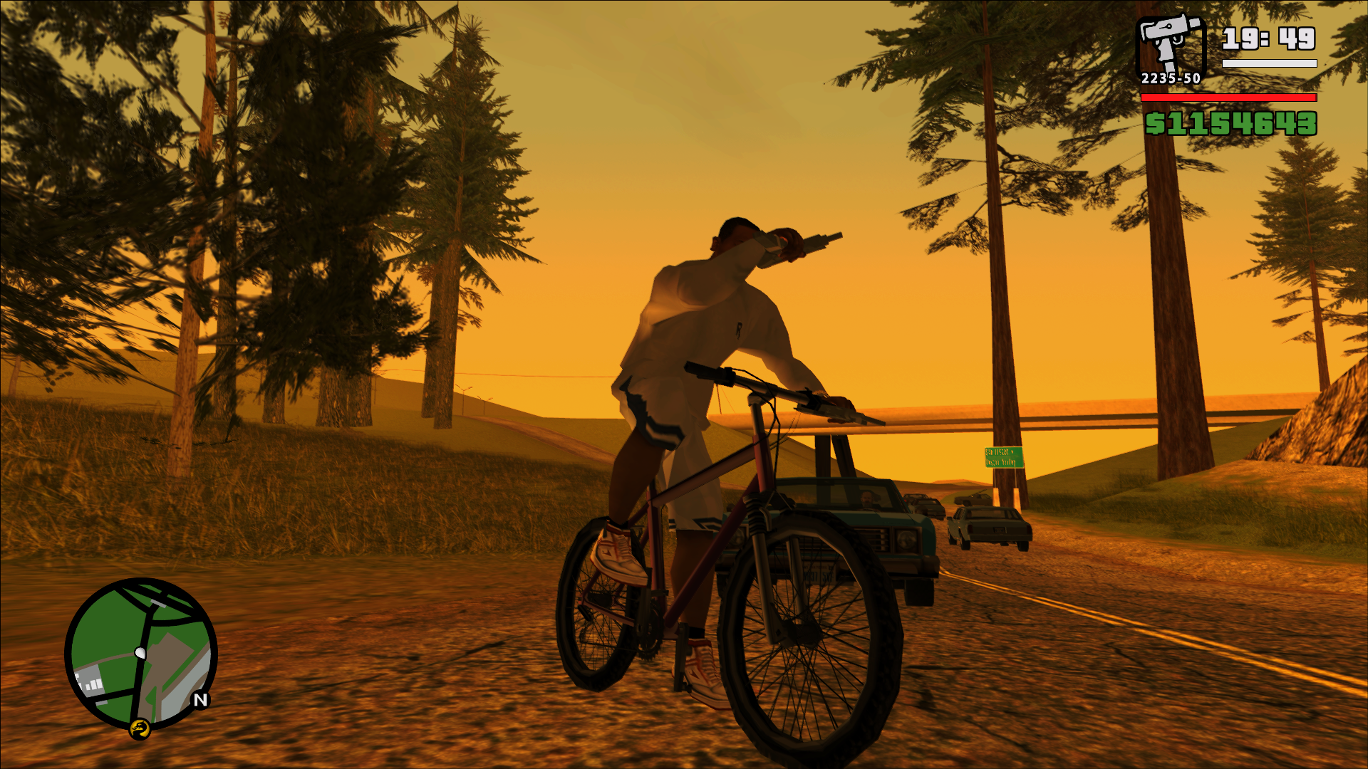 Я уже прошел миссии курьера, все испытания стадионов, прошел дальнобойщика, лакея, миссию медика, такси, полицейского, сутенера, и испытания BMX и NRG-500. Сейчас прохожу испытания на горе чилиад с великом.