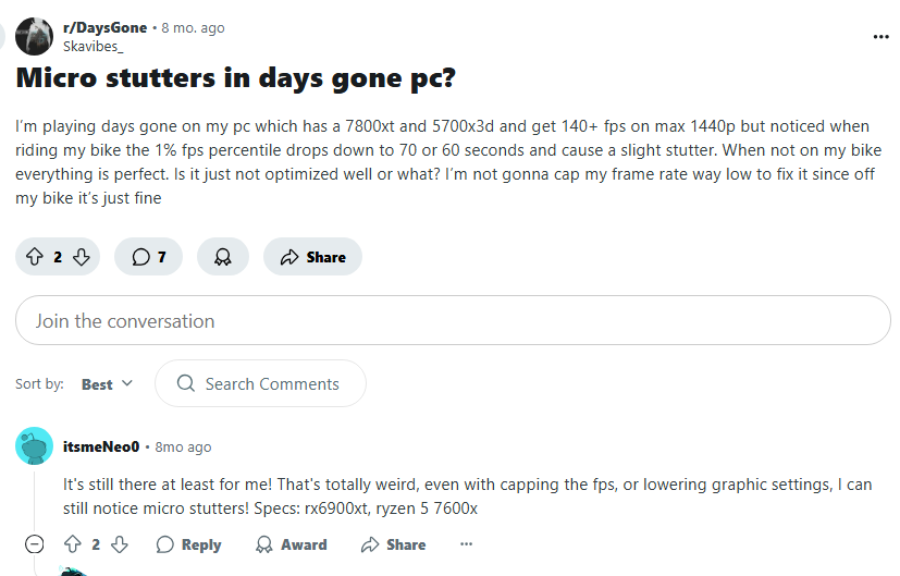 Почему тупые гоймеры пишут про какую-то оптимизацию этого кала? Гейс гон работает просто ОТВРАТИТЕЛЬНО на любом железе. Или они тип видят цифру выше 100 фпс в пастген-игре и уже кончают? Она подгружает локации со скрипом хуже урины 5. Причем каждые 5м это делает. Какие-то нахуй фризы непонятные. Почему все не могут делать технически нормальные релизы со старта, как Тодд или СДПР? В речете такой же пиздец был на первой локе, благо потом хоть нормально стало.