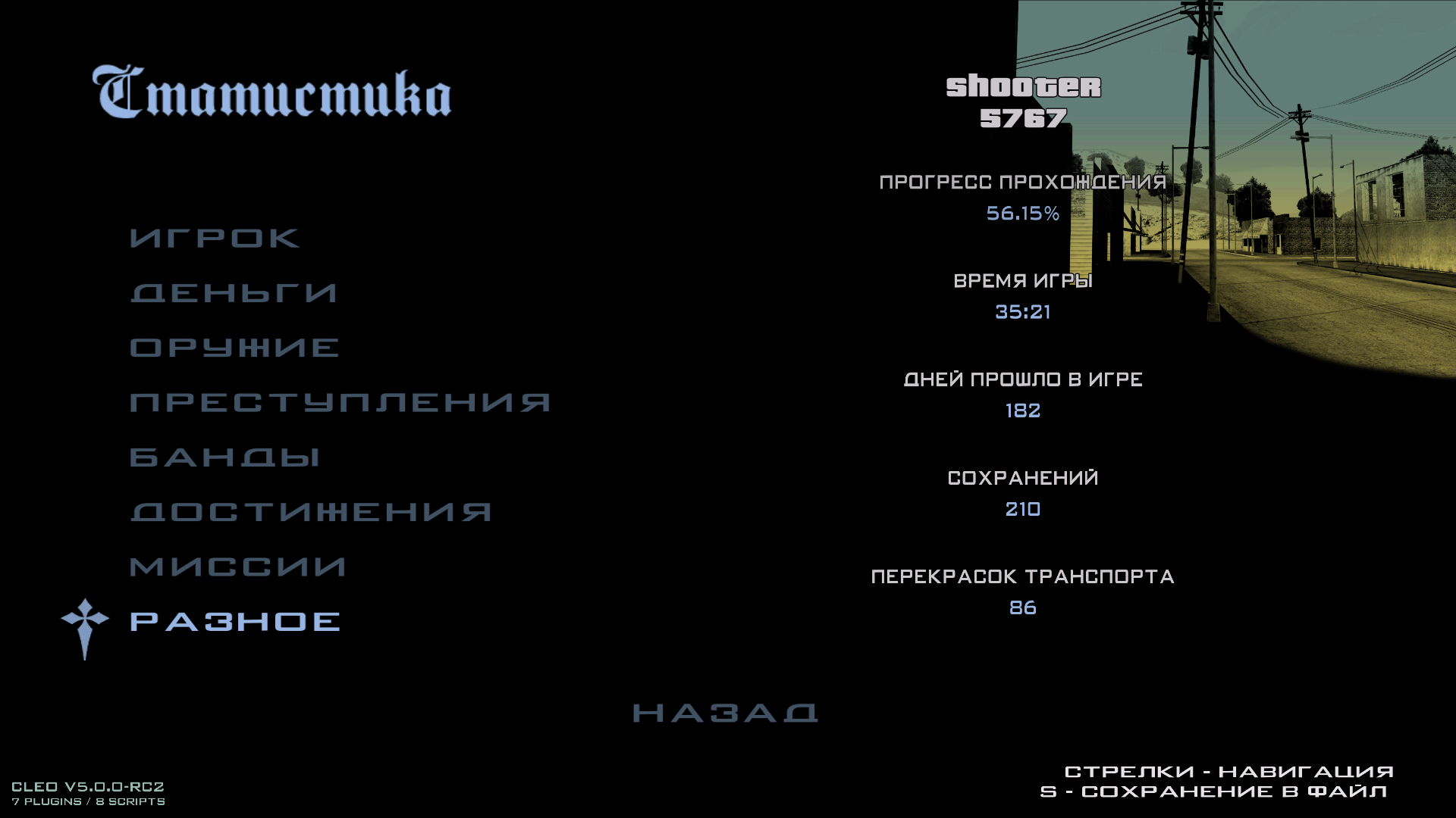 Я временно прекратил прохождение сюжета в гта сан андреас Я занят прохождением побочек и сборка всякого говна вроде подков, устриц, закрашивания граффити.