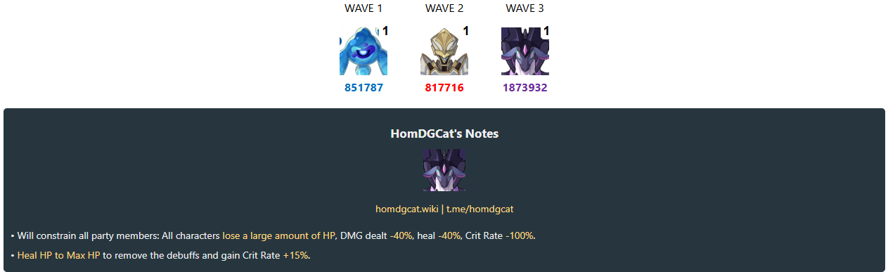 >>5453792 А. Ну кажется понял, если нет двух луновиков - то надо за 10 секунд дополнительно влить 35% от их макс хп, то есть 700к урона. Ну в принципе можно, но в пачке, заточенной под электрочарж, может быть довольно некомфортно. Да, довольно наглый кокблок на двух луновиков.