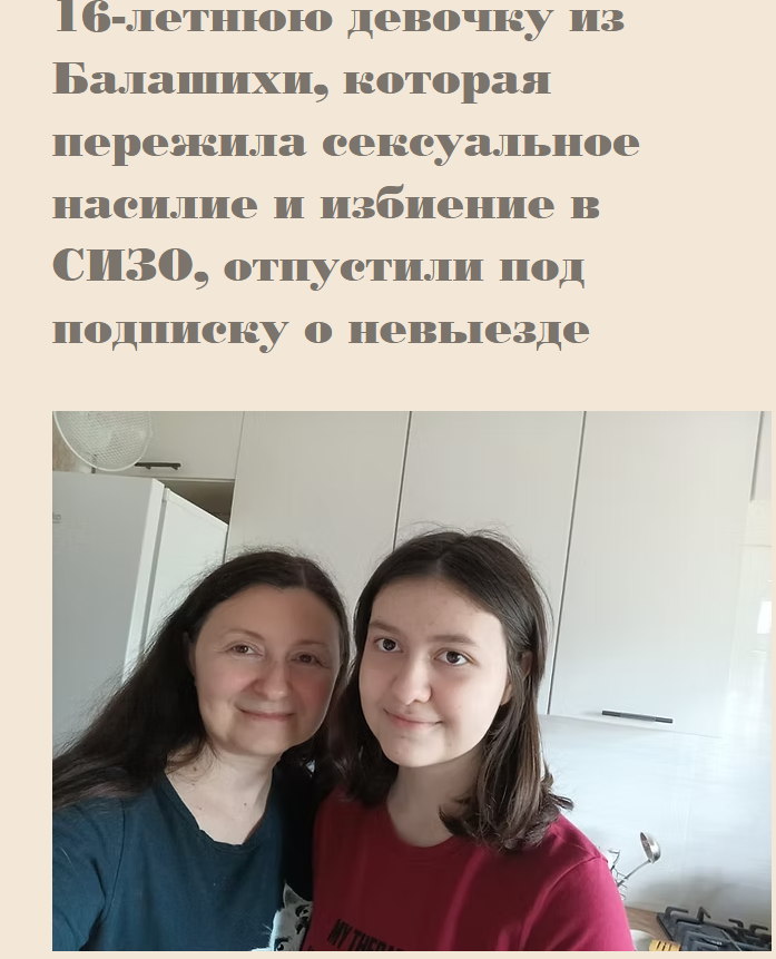 >>18594936 >А кто кого отстранил? Я не в теме. >После года и 7 месяцев проведенных в СИЗО где её неоднократно изнасиловали и психушке куда принудительно поместили, старый следователь допускавший затягивание и волокиту из за чего ребенок провел в СИЗО столько времени был отстранен, а новый следователь отправил девочку под домашний арест.