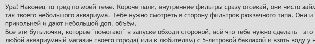 Теперь я думаю надо купить фильтр.. хуильтр какой-то жижи для аквариума. чтобы уже всё было хорого наверняка, помогите разобраться в этом вопросе. Очень хочется рыбку и чтобы она не сдохла =( второй раз я не переживу.