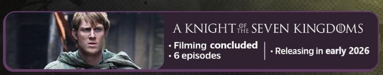 Спин-офф "Рыцарь Семи Королевств" - съемки окончены. Дата выхода: начало 2026 года.