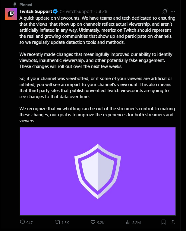 Официальной инфой от твича была про борьбу с ботами. После этого у большинства рустримеров просел в разы онлайн и он стал быть похожим на реальный. А не 5000 ночью на Героях, тухлом Вов на пиратском серваке или скуфских танках.