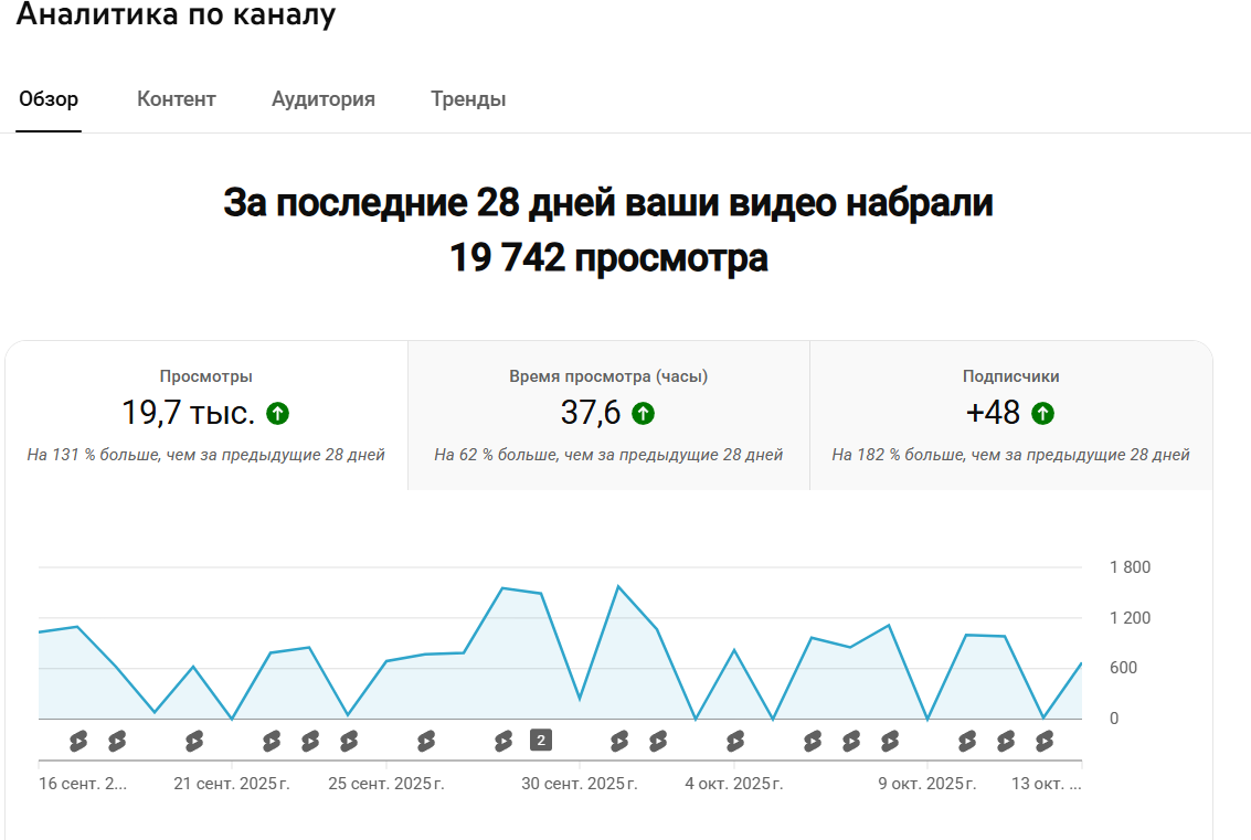 После всего этого залил шортс, и всё, 0 просмотров час висит. Решил попробовать немного подкрутить лайков и просмотров(50 лайков, 600 просмотров), но не помогло, из шэдоу бана шортс не вышел, так как не набрал ничего поверх.