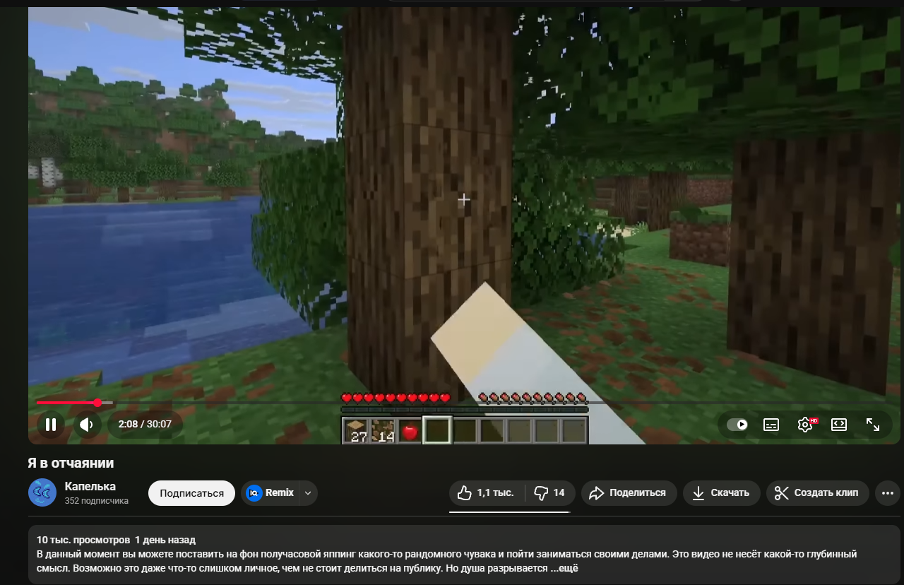 - внутри видео - 11-20 минут постного ебала без смены кадра, удержание от такого сильно страдает, особенно в эпоху СДВГ пыниксов, которые привыкли смотреть 30-секундные вк-шортсы