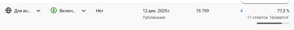 >>2404231 Не, ты не понял. Все выглядит так, что я получил шедоу бан. У меня были ролики что начинали расти, канал старый но на нем не было шортсов. Я закинул 1, он взял 140, второй, он взял 250, трети 1199 и все. Каждый следующий не получает просмотры. Те ролики что смотрели - тоже. Ни один мой ролик, что старый, что новый не получил за неделю ни одного просмотра.