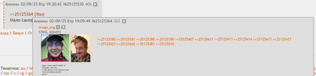 >>25124979 >пискнуть на Короля снг твича Эвелона Я тебе объяснил в прошлом треде - Братишкин это популярный стример в понимании Ильи, он знает его, знает его аудиторию. Эвелон же для Ильи это раздутый казиком и букмекерами бесталанный нехаризматичный хохляцкий кусок дерьма без зрителей и с полностью накрученным онлайном и дутой медийкой, он для Ильи вообще никто сколько бы квартир на отмытые деньги не купил, а вот Братшикин да, топовый стример, пусть и на поводке у Дианочки. То же самое касается Бустера - это дерьмо которое Королю даже неинтересно чтобы на него пиздеть как на братишкина.