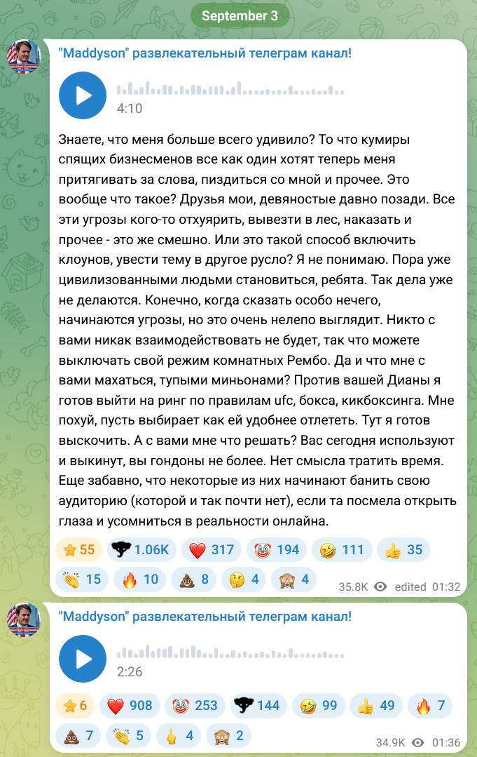 Было б неплохим мувом у рекламной шаболды что мэд обосрал купить у него рекламу, чтобы он сразу после обсера часа 4 сидел бы облизывал их. За пару лямов думаю он бы свою жопу с радостью снова продал.