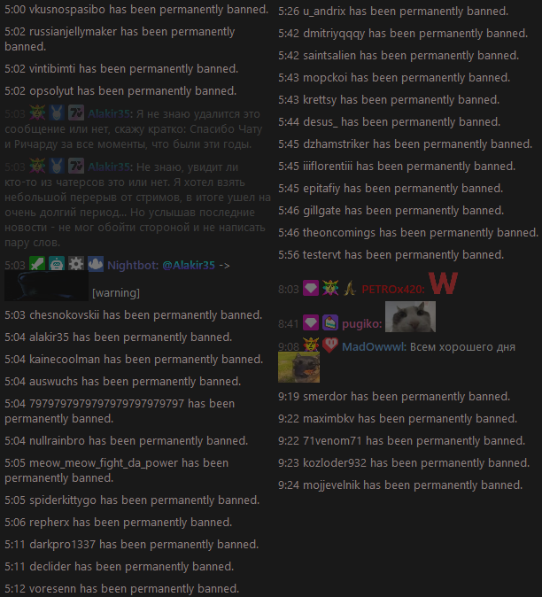 >>25142773 там должен быть таймаут по сообщениям. я не верю что при таком количестве зрилов такой тухлый чат. я когда серегу хел е в 2015 смотрел у него зрилов было 200 человек и чат летел