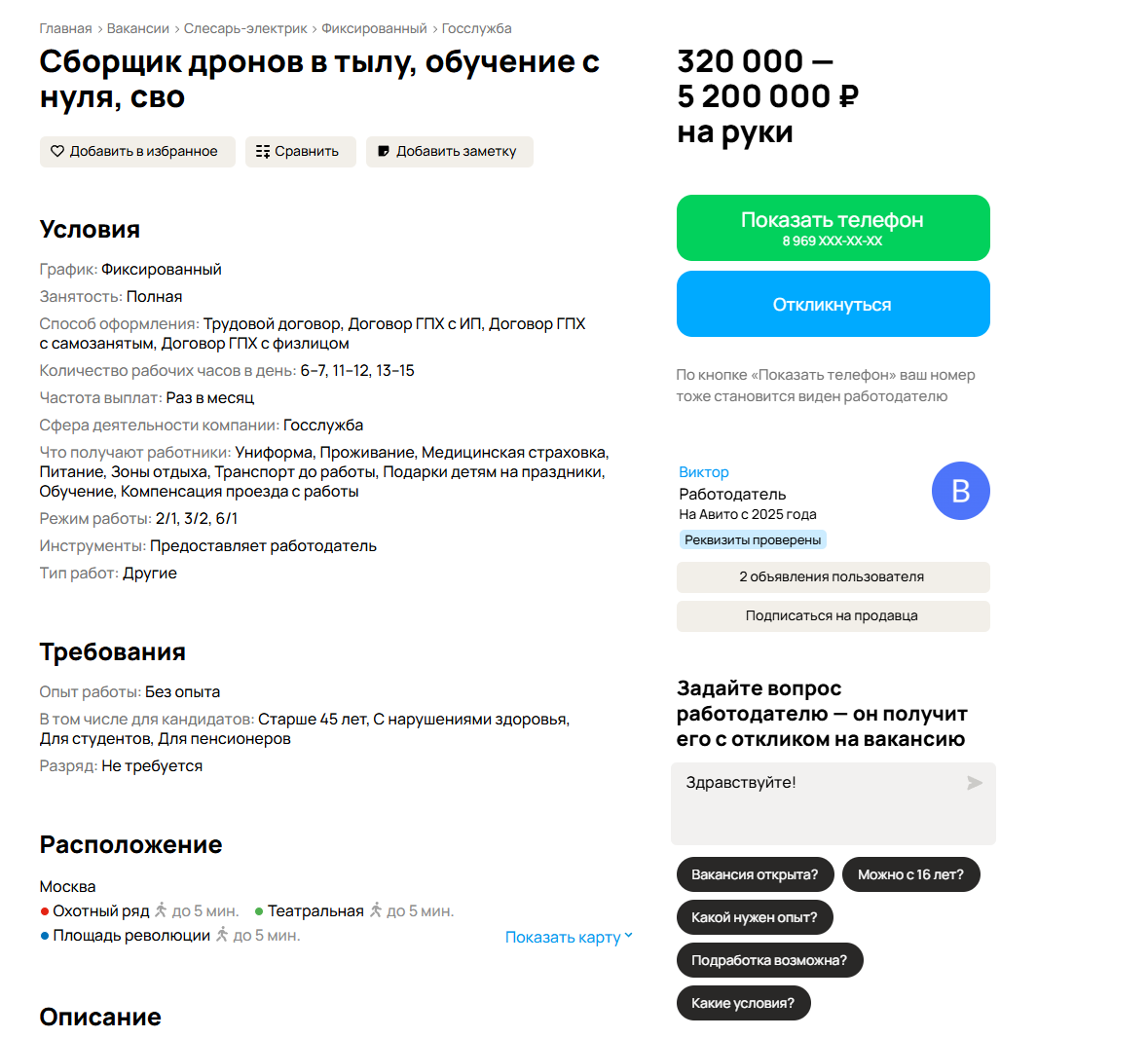 >>10509075 >Либо это рекрутер, который собирается на тебе бабки сделать Да ваще тогда прям там при них набирать 117 и предьявить им сказать че за хуйня, я пришел где мои дроны