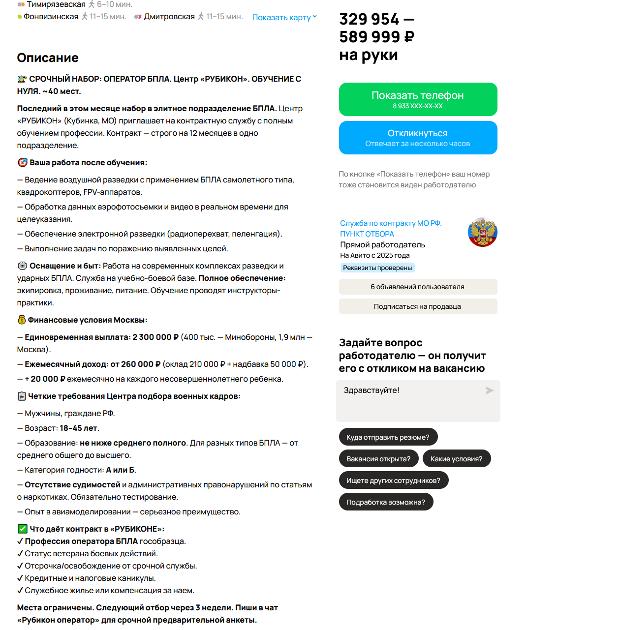 Условия: 1. Служба в войсках связи. 2. Быстрый рост званий и карьеры по профилю. 3. Единовременная выплата — 2 300 000 ₽ на момент написания поста. 4. Зарплата от 210 000 ₽/мес. 5. Билеты и проживание — за счёт рекрутеров.
