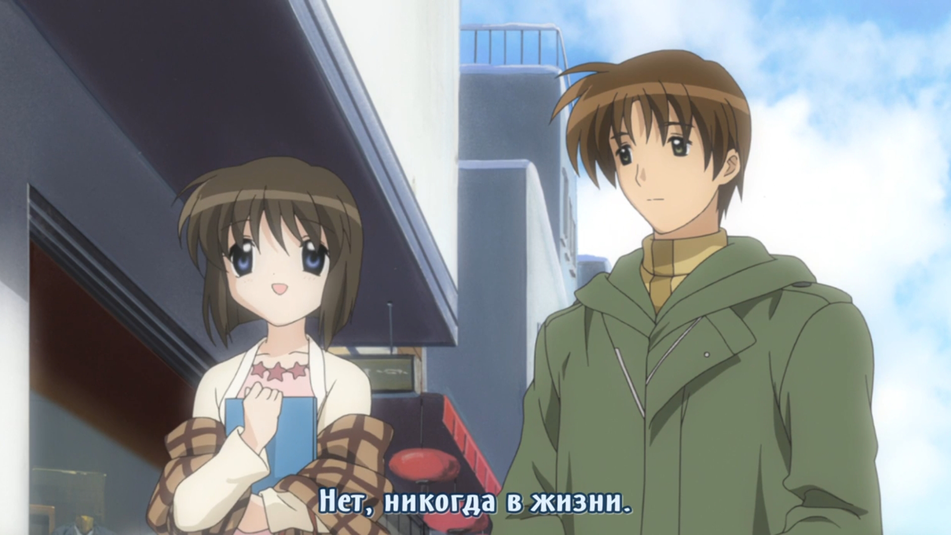 >Я помню, у Томоё в первом кланнаде был брат-колясочник, но это же был не Такафуми по-моему Не, это Такафуми. И он был коляске, потому что прыгнул под машину, чтобы родители не разводились, а конце рута Томоё он выздоровел. В Томоё афтер об этом тоже будет упоминаться