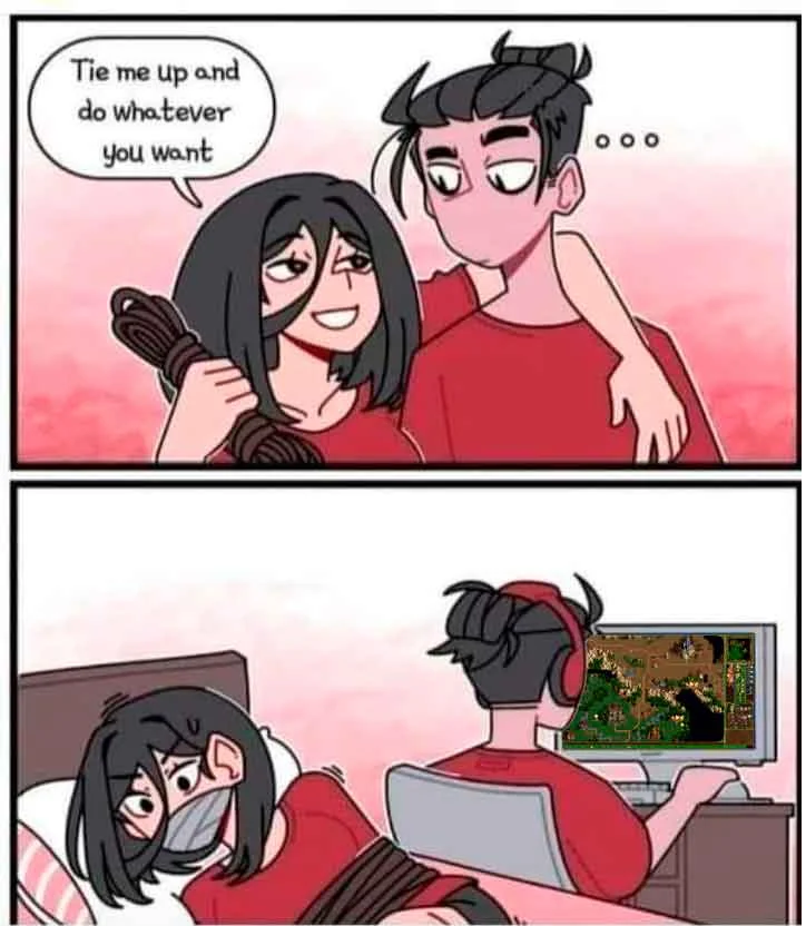 Возникает вопрос — а нахуя тянке такие отношения, если вместо этого можно приходить с работы и играть в игры, как это делают куны? Вот чтобы что, профит в чём? Тем более, что есть куны, которые умеют сами себя обслуживать, можно выбирать для отношений их. И да, тут можно заменить игры на любое другое занятие, какое нравится тянке.