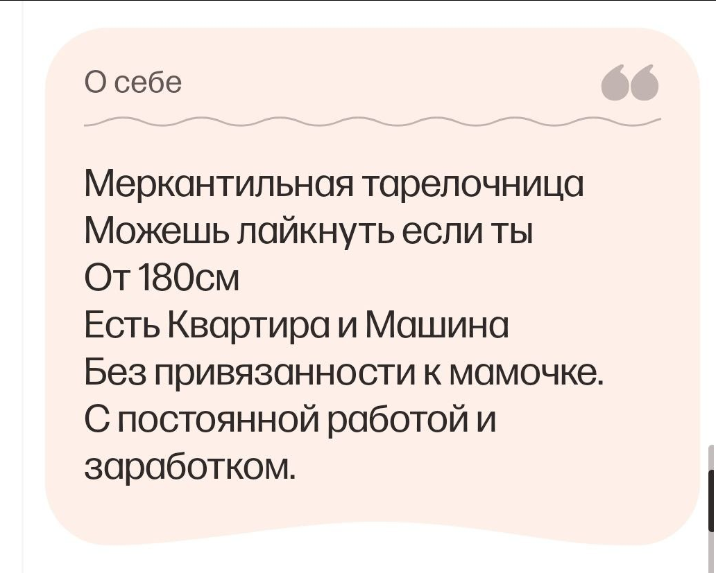 Как так получается, что лысого шепелявого алкаша в 30+ регулярные метчи на сз и больше шансов найти партнера и поебаться, чем у его бывшей тянки-умницы-ученой? Что это говорит о нашем сосаети?