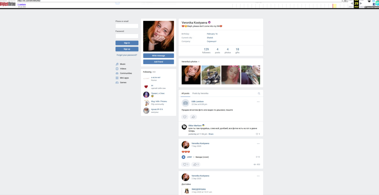 Скрин её нынешней страницы через вейбек машин