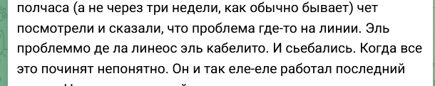 >>25255857 Я кста всегда думал что самая крутейшая хуета на свете это спутниковый интернет, типа скоростя ебать-копать. А году в 2010 с чуваком об этом разговор пошёл, а него за городом как раз такой был. Говорит стоит дохуя, а скорости нихуя, там ещё какая-то ебанутая тема, что что-то типа общего потока было и чем больше людей чёт качают, тем парашнее всё работает. Я думаю, слава Богу мой провайдер Стрим на 256кб без всяких разрывов, можно в коловдути Блек Опс 1 играть по мультиплееру и кайфовать.