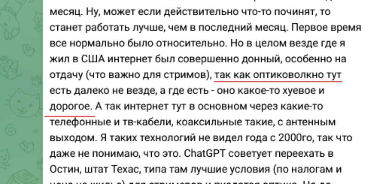 Между тем в моей деревне, на окраине цивилизации - проведено оптоволокно. Да всего лишь сотка мегабит на отдачу и прием. Но этого вполне хватает для стримов в 1080, без дропов.