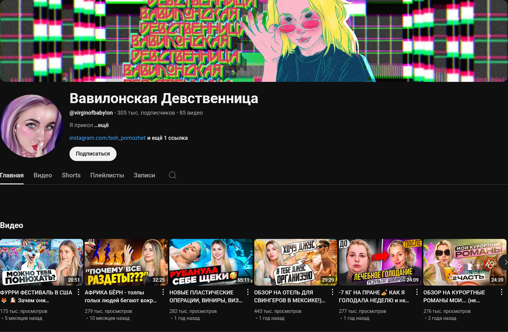 >>324865548 >А потом прошло 2 года и записей больше нет. Инсту она тоже забросила. Можно же рассказывать интересно про тот контент который мужикам не интересен. Продвигала бы дальше это, смогла бы на этом заработать. Вавилонская девственница тому пример: https://www.youtube.com/channel/UCiBMaVomhKKGbkd6Ws6C14Q Её даже ведущей на ТВ пригласили, на телеканал Пятница. Ведёт свою передачу про путешествия под названием Белая Амазонка: