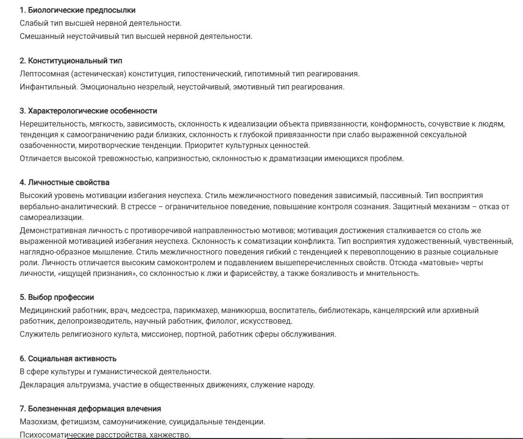 >>212073 >Нейротизм (также невротизм) — это черта личности, которая связана с эмоциональной нестабильностью, склонностью к негативным переживаниям, таким как тревога, страх, гнев, а также низким самоуважением и повышенной чувствительностью к стрессу. Люди с высоким нейротизмом чаще испытывают дискомфорт даже в благополучных ситуациях, а их реакции на трудности могут быть чрезмерными и неадаптивными