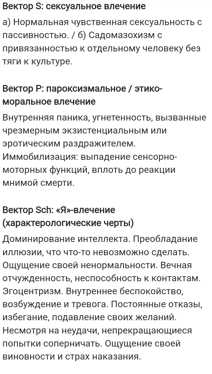 >>212233 Первый истчоник -- мазохизм, оснвоанный на унижении, ролях. На этом строится сексуальность. Был уже в 7 лет. Второй источник симпатия к однокласснику, навязчивое желание обнять его. 12 лет. Потом поиграл в Дельтаруну, очень понравился Ральзей, и появилось навязчивое желание иметь кунчика. На этом этапе также появилось влечение к чужим телам, до этого сексуальные фантазии были сконцентрированы на самом себе в разных ролях. 17 лет.