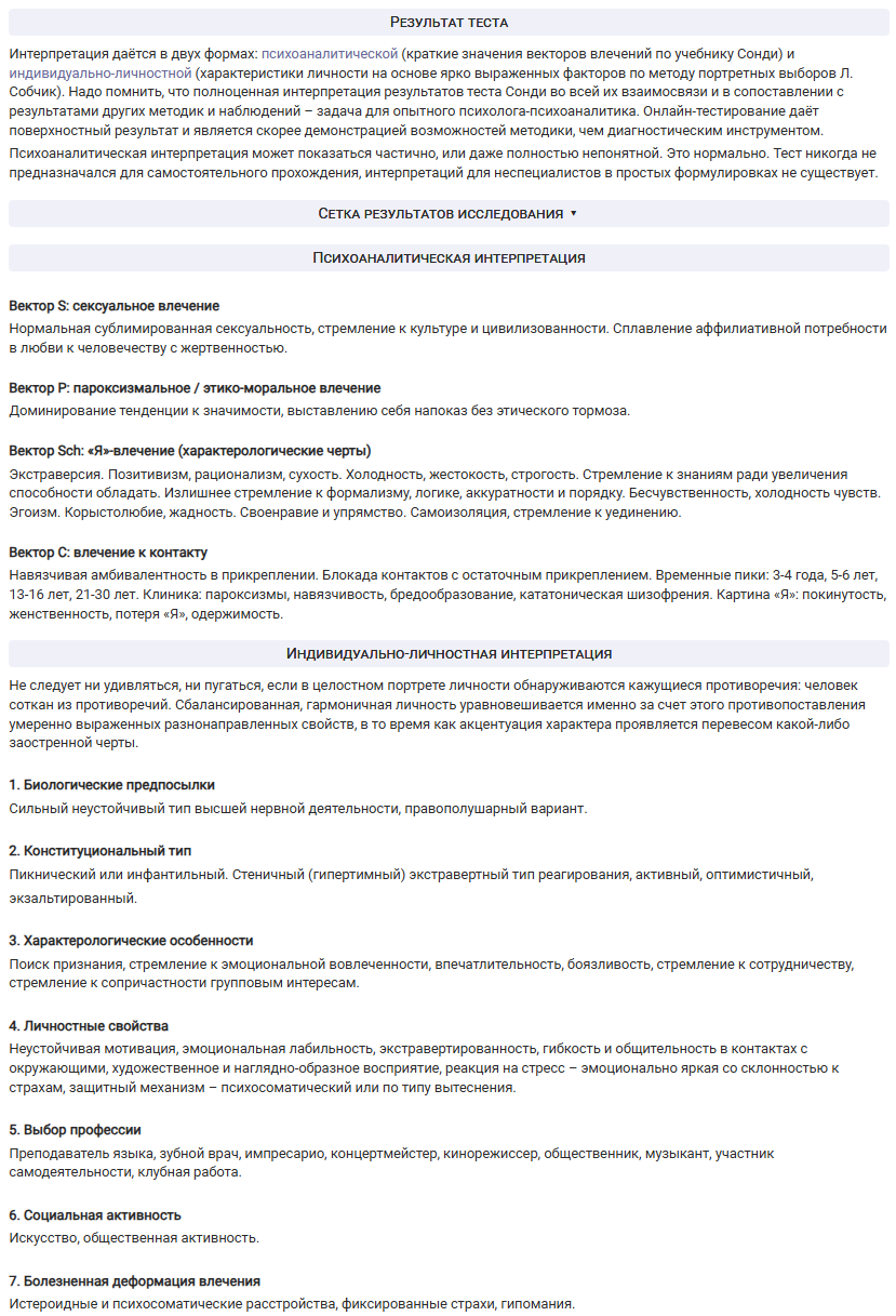 С какой-то ерундой развлекаетесь. Лучше полный опросник MMPI (СМИЛ) бы прошли. Вангую пики по 8,7,2,0 шкалам, утопленную 6 и диссонанс между L, K, F у большинства обитателей треда.