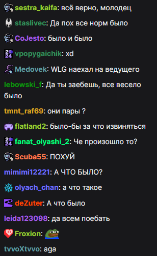 я смотрел стрим уже половину дня. в чате одни и те же ники пишут время от времени буквально типовые, тупые сообщения, в стиле "апхапххпахп" или сообщения с скобочками, будто имитируя каких-то школьников. пиздос. от этих чаттерсов прям крипово