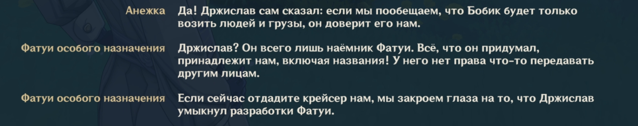 Бедные Фатуи... Это просто какой произвол и невезение, они все время сталкиваются с каким-то отморозками, которые просто по своей прихоти пиздят у них технику, разработки, людей. Мне стыдно что приходится играть за блядину бандита Чмоню Голопузикова, который обирает нормальных людей.