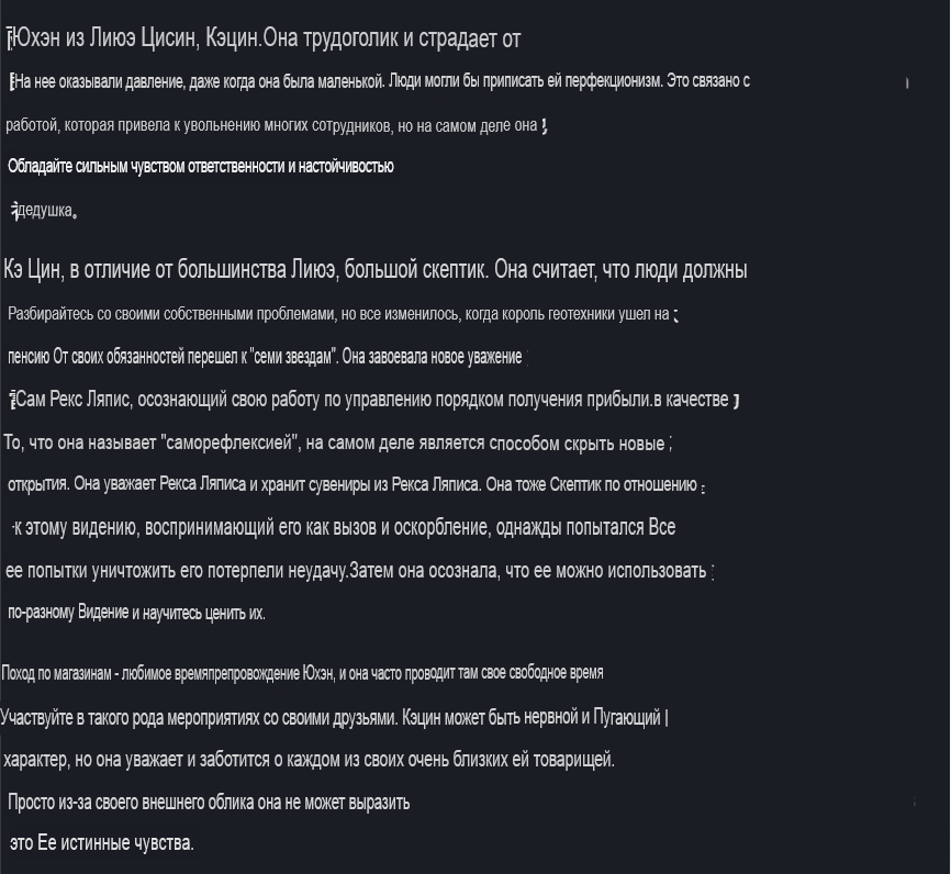 >>5636978 > слитый персонаж То, что ты себе что-то там нафантазировал - не проблемы Ляо. Наоборот отлично прописанный и раскрытый персонаж, не плоский.