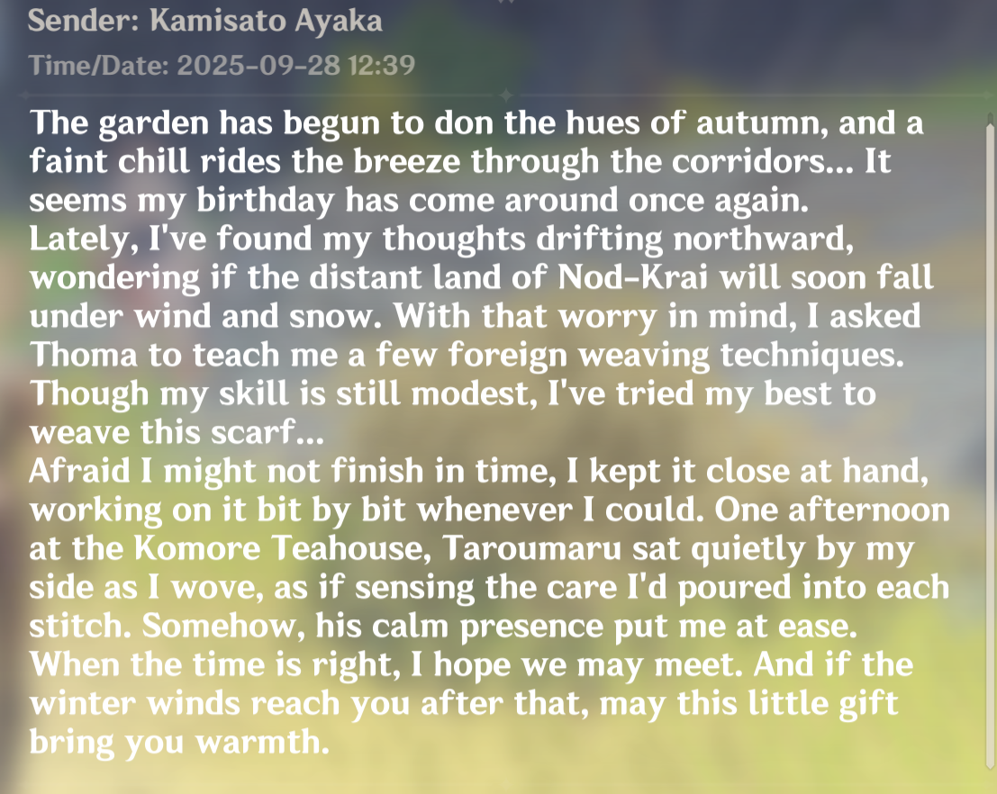 С днем рождения наш каноничный романтический интерес! Победительница моей первой бездны на пару с Дыняционалкой, год стабильно мне все закрывала, потом в риверс мелте с горением пару раз выгуливал ну и под конце Натлана ожила и напомнила о себе вновь. Тогда и решил скин все же купить, который не решился брать на релизе, заслужила жепа. По сути у меня кручение персов от нее отталкивалось, залетел в 2.0, забрал омут в 2.1, потом Шеню на релизе, а потом уж узнав, что ее одна из любимейших сэйю озвучивает, решил что звезды сошлись для ее отряда. Вайфой любимой правда ни она ни Эола которую ждал почти два года не стали, но воспоминаний с ними куча связана в игре и входят в не большой круг трижды коронованных элитных вайф. С днем рождения Аяка!