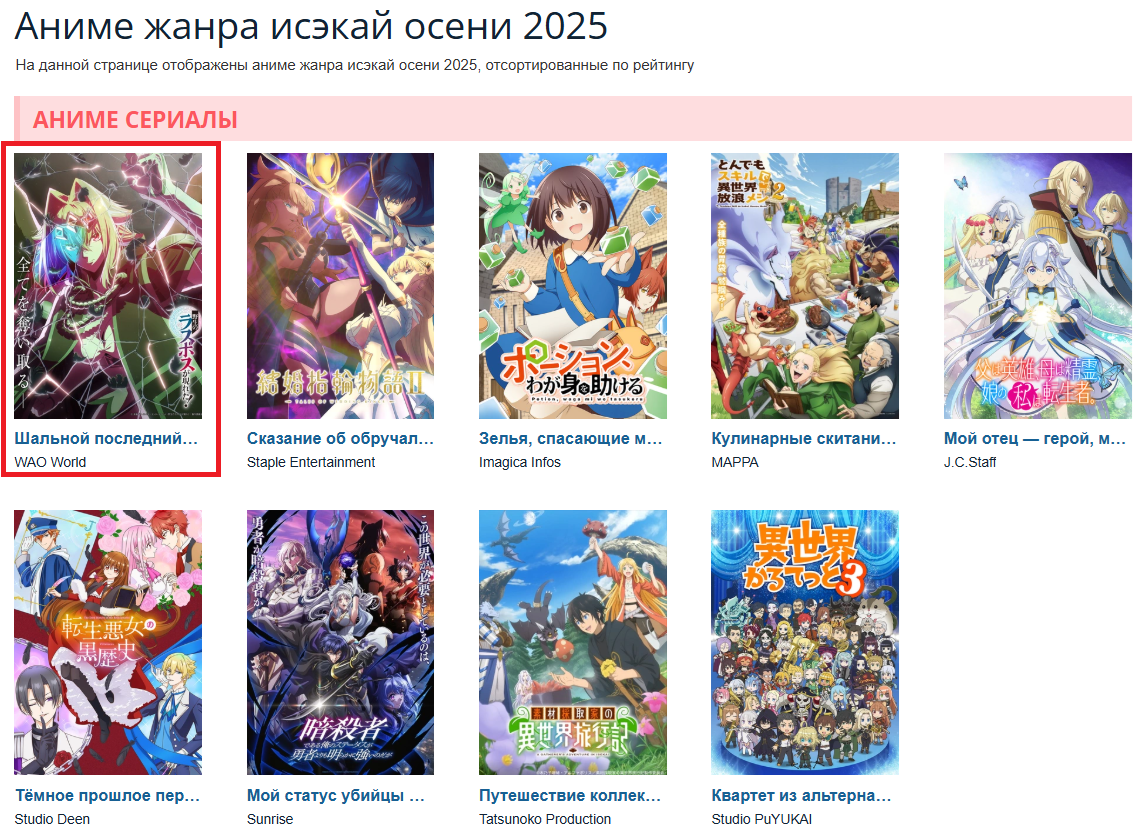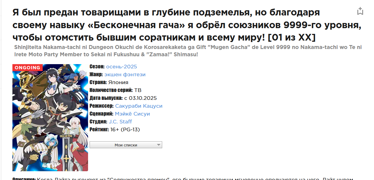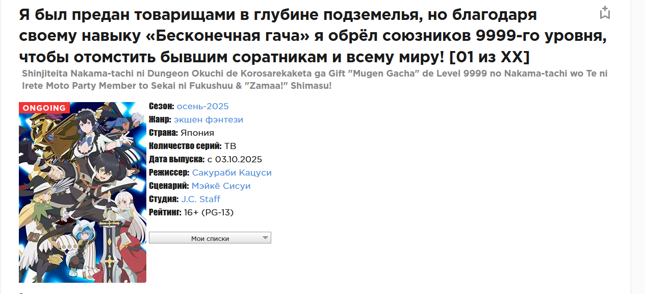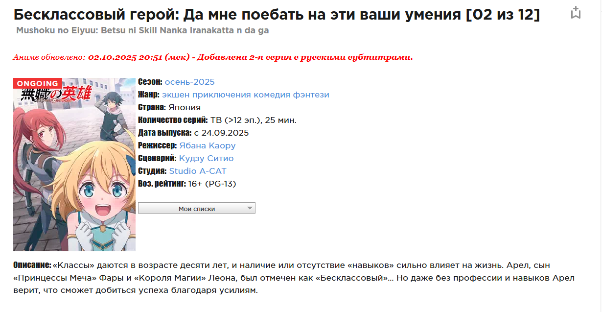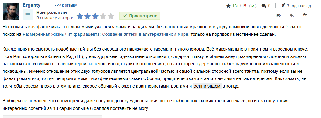 Последняя серия аниме, которую вы посмотрели, и ваш отзыв на неё