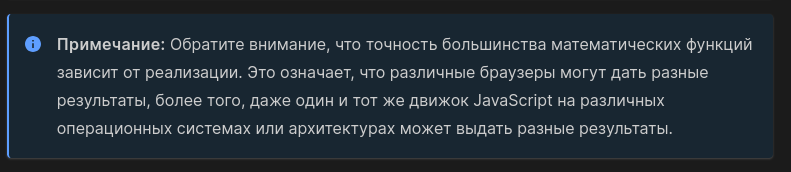 >>3450862 → >The Math.round() static method returns the value of a number rounded to the nearest integer. >If the fractional portion of the argument is greater than 0.5, the argument is rounded to the integer with the next higher absolute value. Что не так? Работает как математическое округление до целого. У тебя есть еще floor и ceil