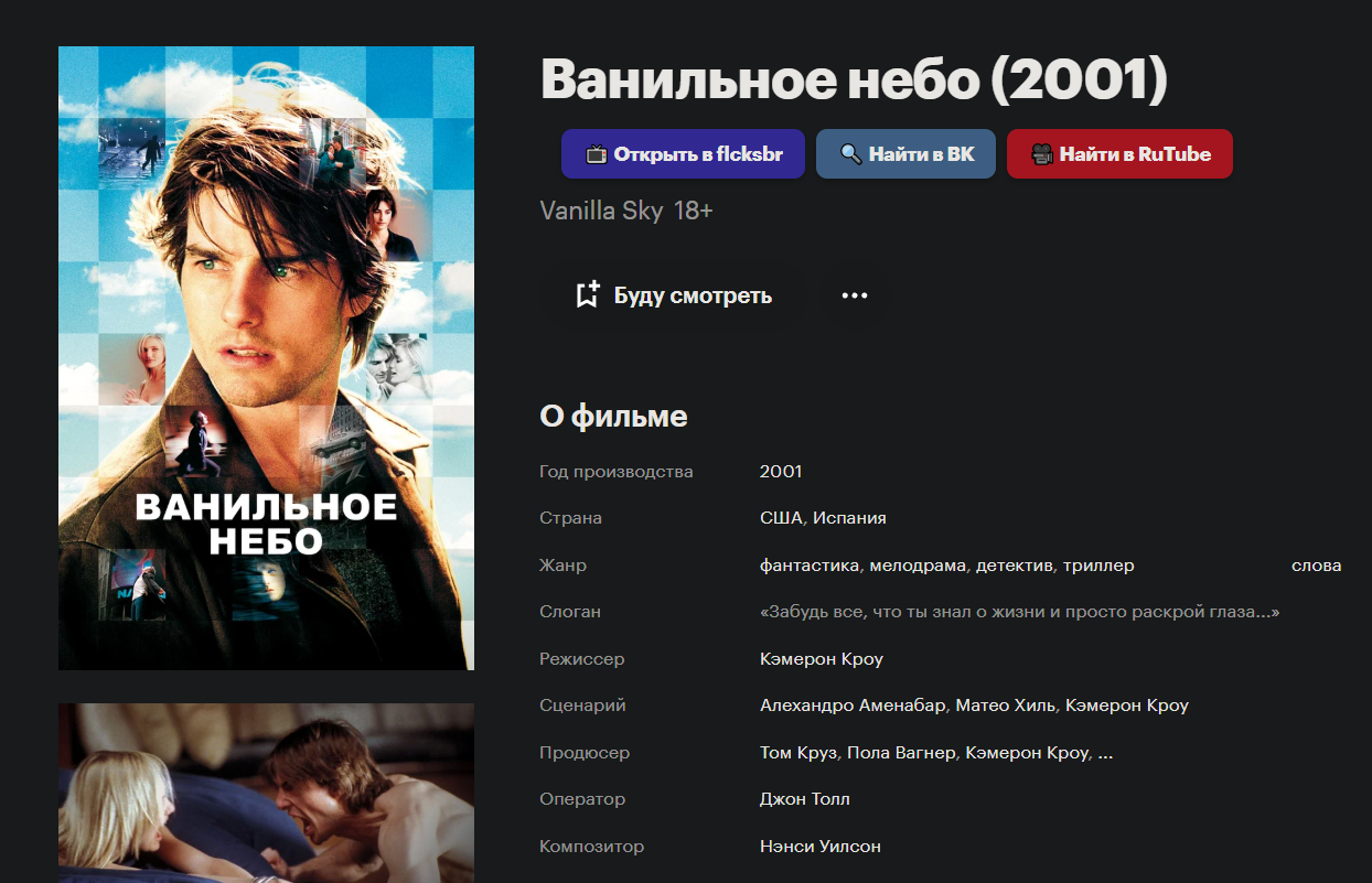 2) Фильм красивый, мне зашел. Шоугерлз + Таинственный лес + Ванильное небо. Мы живем в аду.