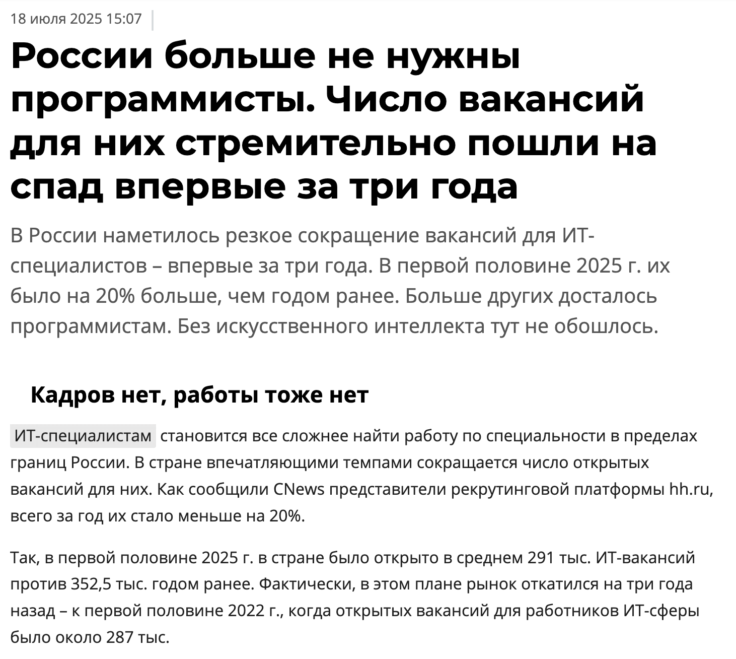И каким образом факт того что сейчас задроты, способные ебашить на миддл уровне идут на трейни позиции когда несколько лет назад можно было вообще без знаний вкатиться показывает как в айти все охуенно?