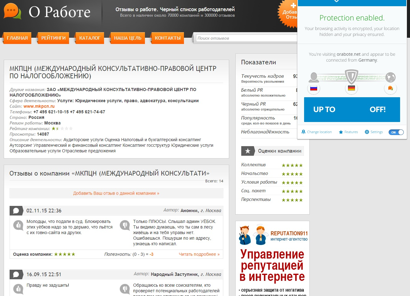 >Сама запрещенная страница (http://orabote.net/feedback/list/company/51085) содержит отзывы пользователей портала о работодателе — столичной фирме «МКПЦН» (сфера деятельности: юридические услуги, право, адвокатура, консультации).