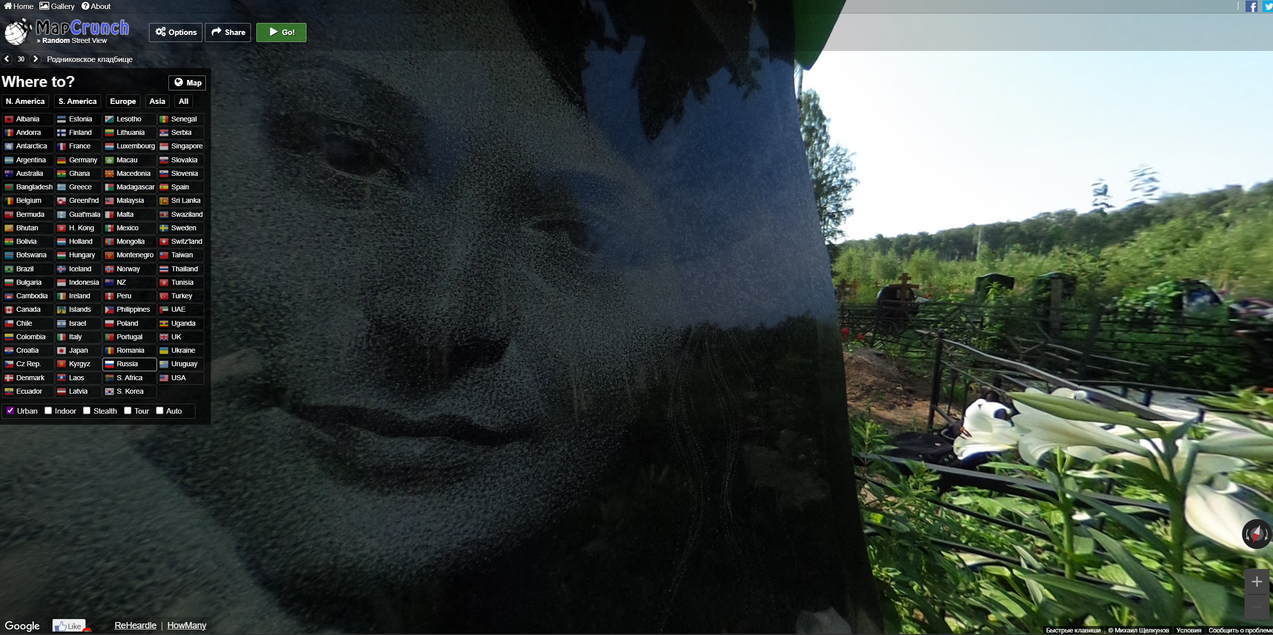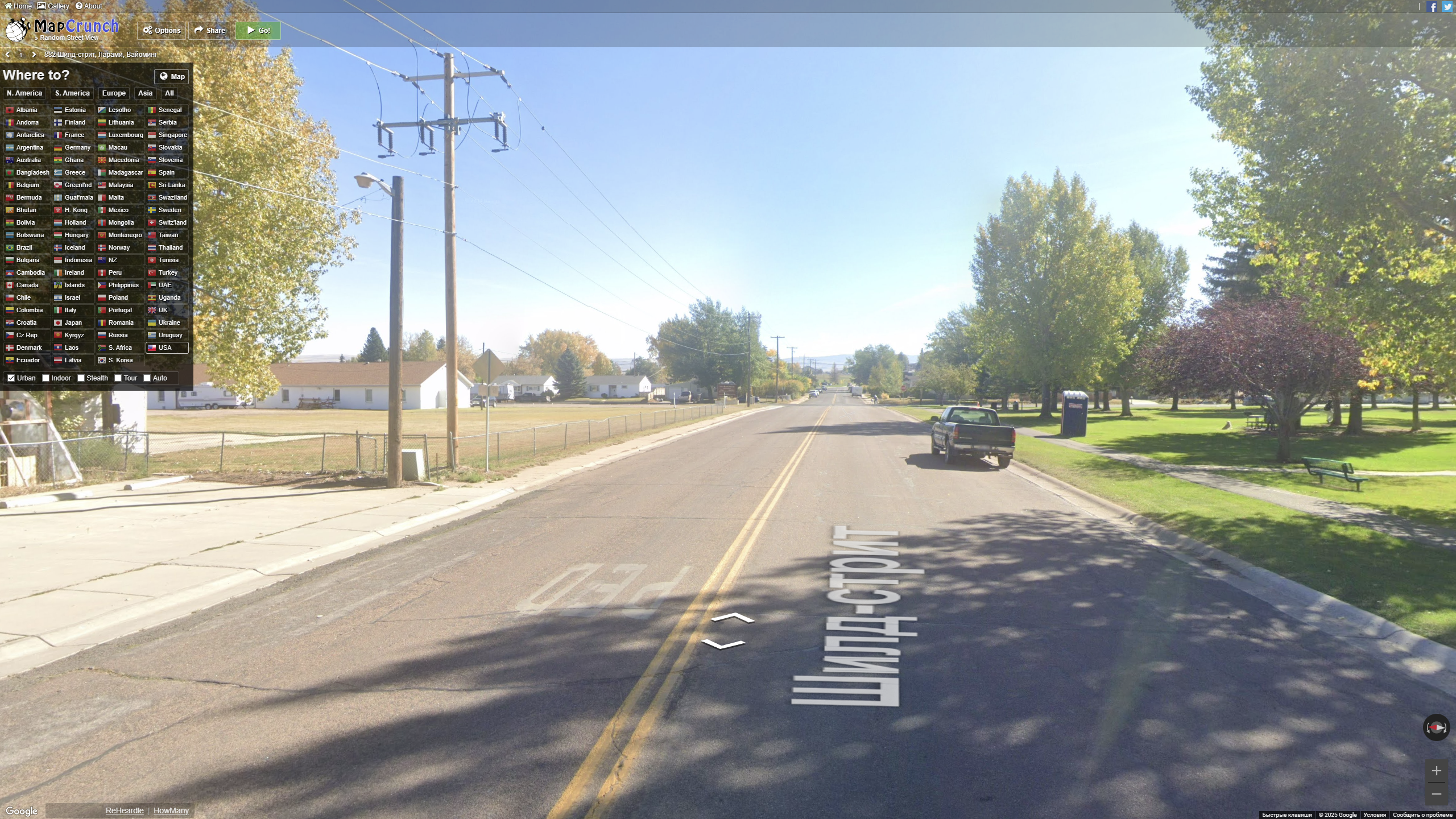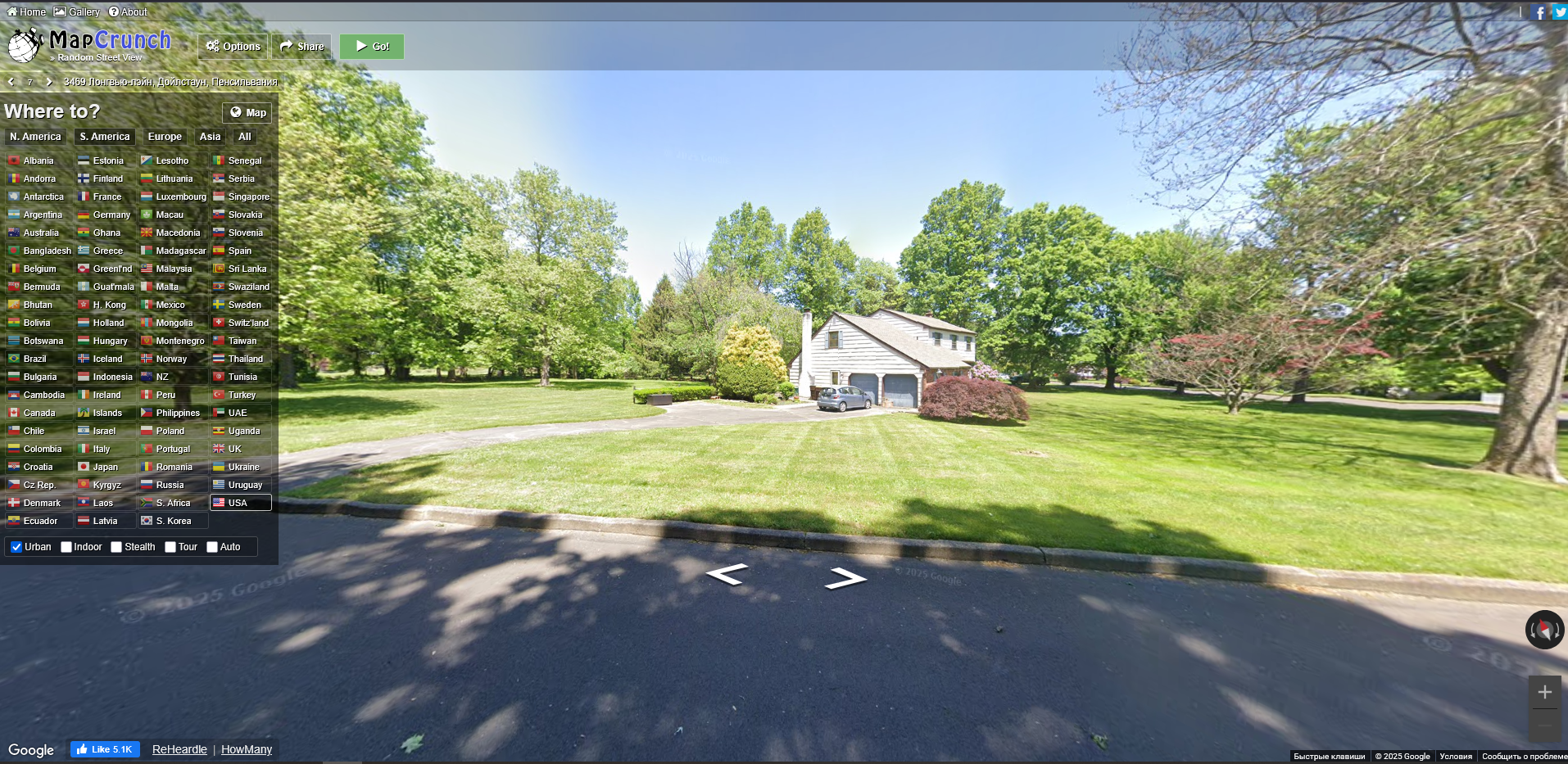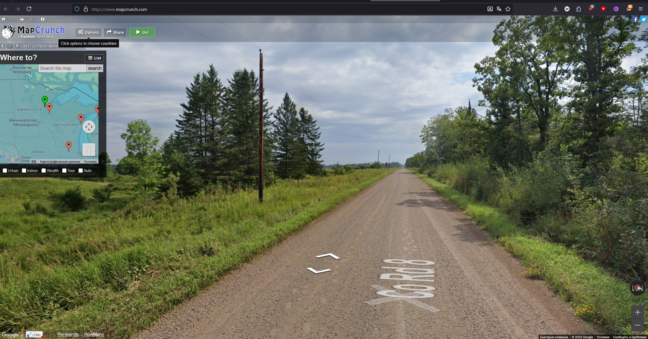 1)Переходим на сайт MapCrunch https://www.mapcrunch.com/