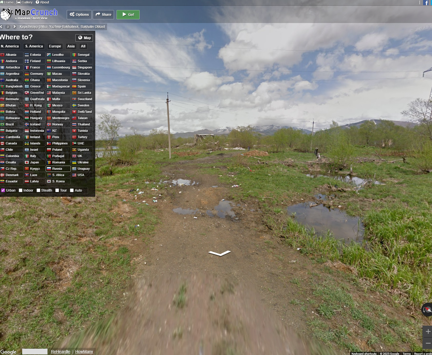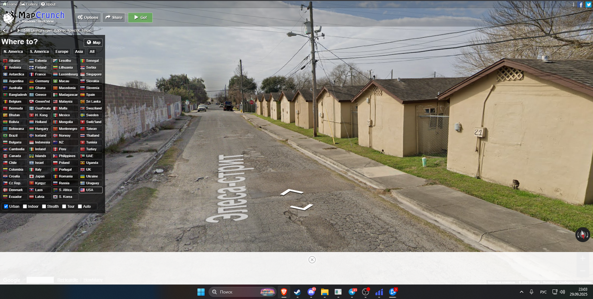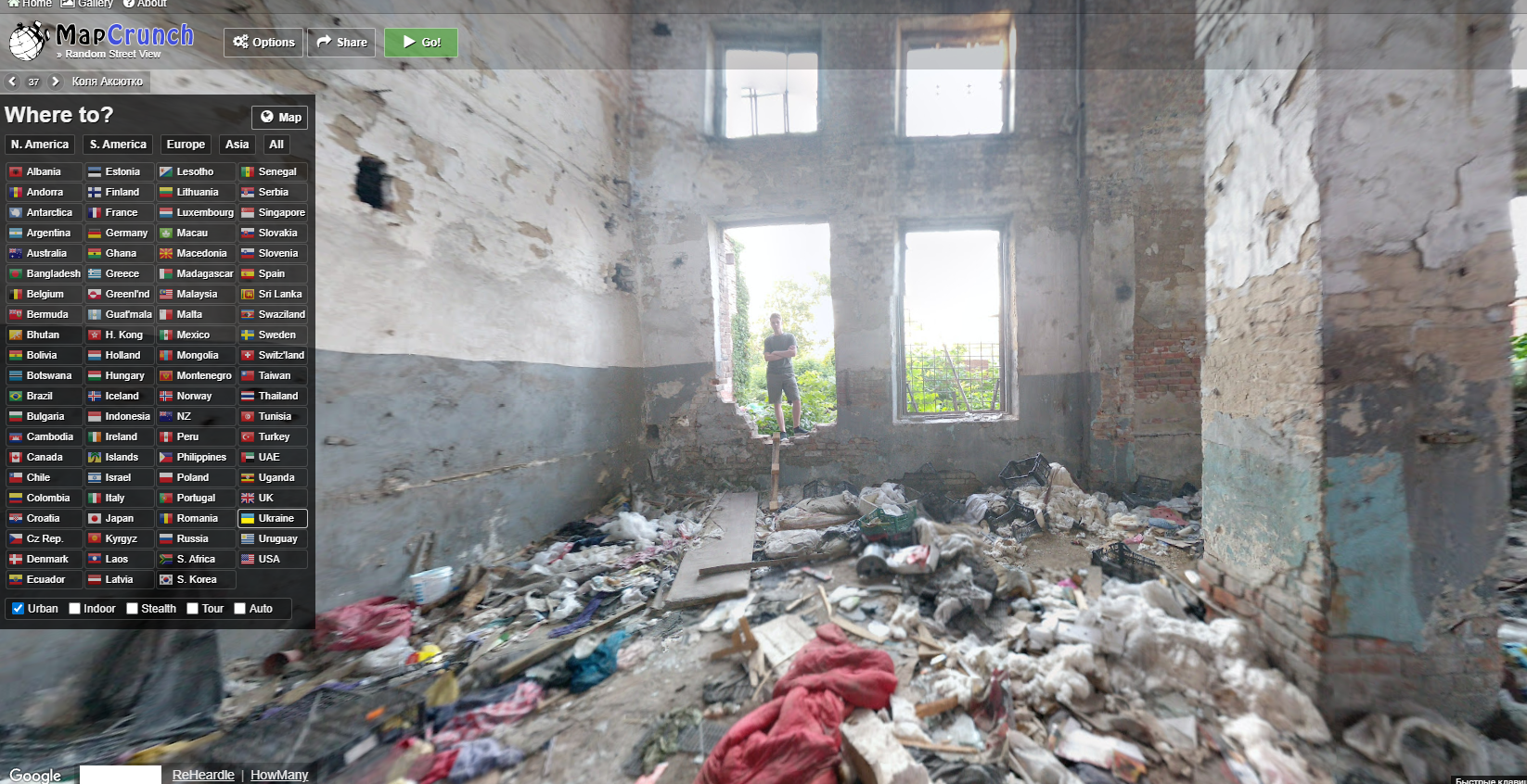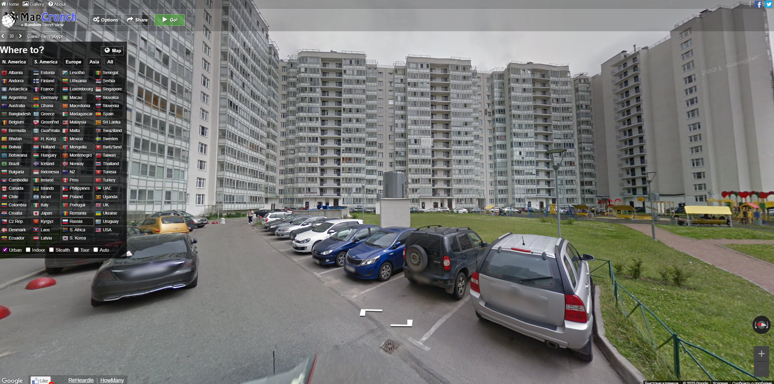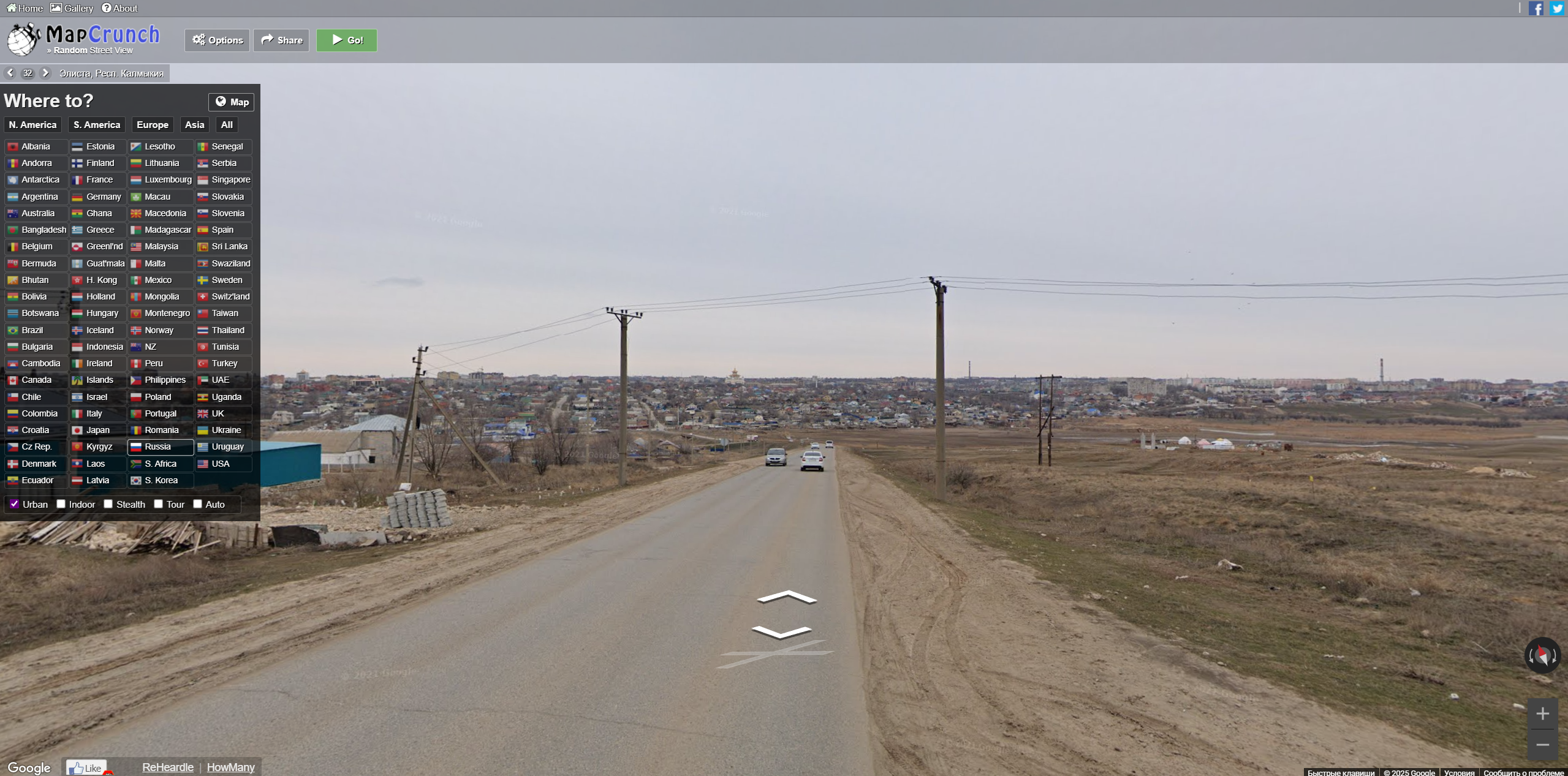 1)Переходим на сайт MapCrunch https://www.mapcrunch.com/