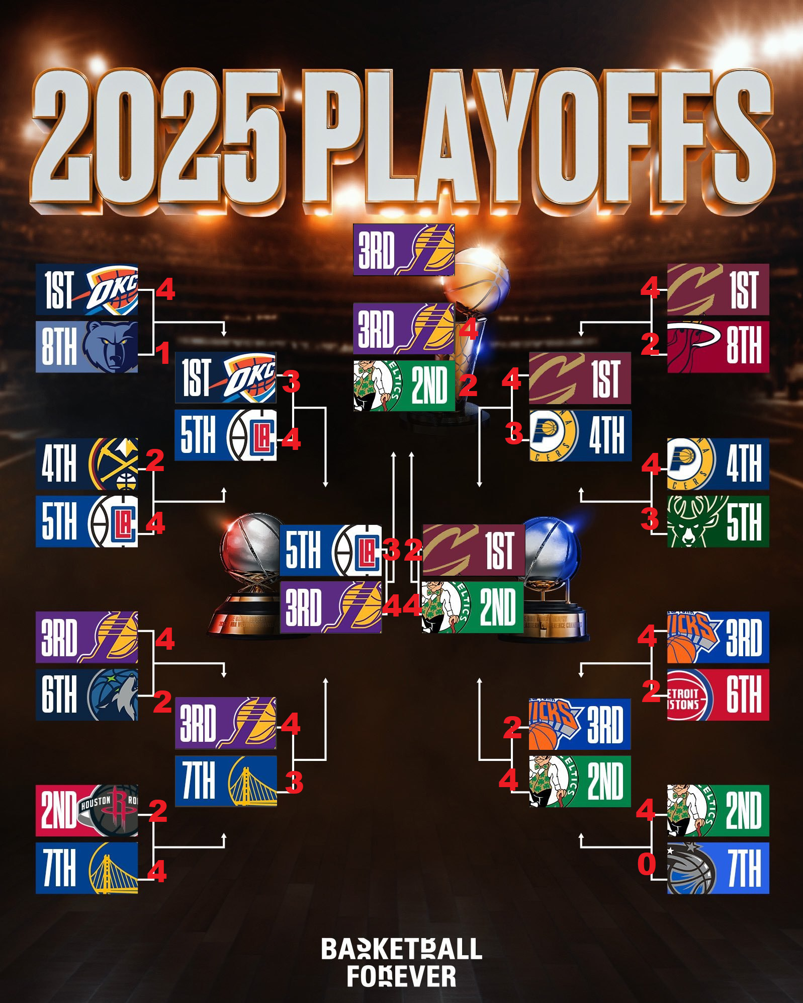 Первые и вторые места от обеих конференций будут в полуфинале. ну максимум гсв рыпанутся на ракет. Так что пока только 1 пару есть смысл смотреть до полуфиналов.