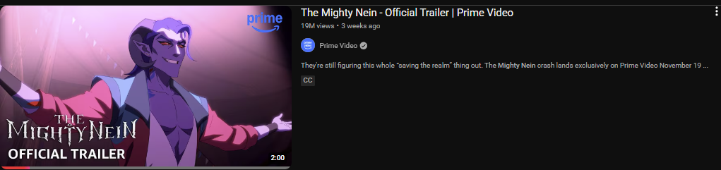 >>3444417 >Правда в этом же году был трейлер Mighty Nein, буквально адаптация чьей-то партии в ДНД анимационная и уже охваты в 10 раз выше Ведьмака. Ибо Critical Role - феномен у амеров. Там на анимацию их похождений люди 11 миллионов вечно зелёных задонатить готовы. А у Ведьмака объективный спад. Тройка давно уже отгремела. Да и не настолько она у них популярна была, как у нас любят рисовать. Это у славян помешательство на ведьмаке, как в штатах на супергероях и днд.