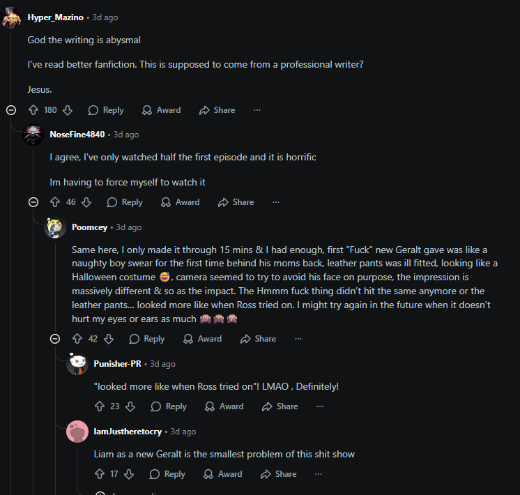 >Даже с дерьмовыми рейтингами будут просмотры и подписки из-за одного высера отменять не будут Там сезон 200+ лямов долларов стоит. А заинтересованность в сериале сейчас ниже, чем у рандомных корейских дорам. Это буквально сжигание денег. То что они забили на маркетинг совершенно показательный пример, что они не ждут успеха и просто хотят покончить с франшизой. Видимо из-за контрактов на адаптацию они не могут просто остановится. Другого объяснения нету.