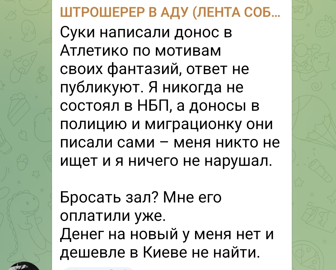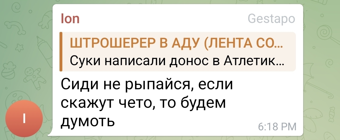 Администрация Атлетики ответила, что с такой хуйней надо обращаться сразу в компетентные органы, а не к ним, но тк ситуация серьезная, они уже сообщили.