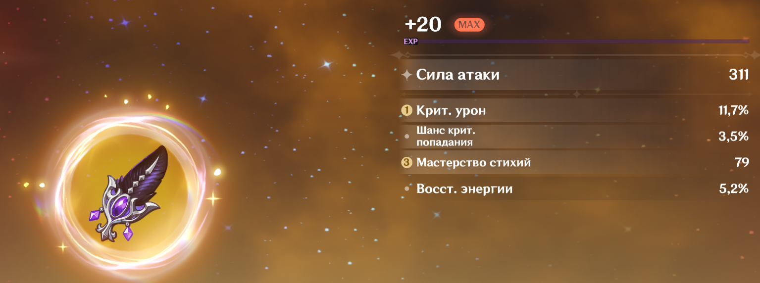 Управление энергией: У Райдэн должен быть высокий показатель Восст. Энергии (~250%+), чтобы она reliably восстанавливала энергию команде после своей взрывной атаки.