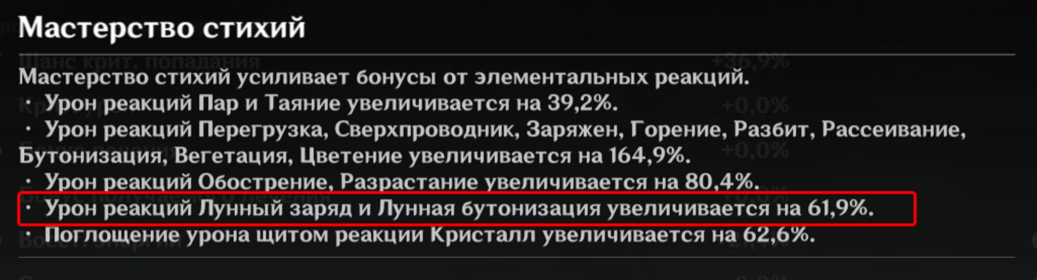 >>5651380 Насколько я понял, поскольку самой реакции нет, урон от нее емом не увеличивается. Он готовое лунное электро выдает с ульты, можно даже вообще без гидровичков в пате. А емом бустятся только попуки грозовой тучки, когда в ешке по смоченному ударил, простой лунный чарж, как тот был задуман. Может и нет - примерно почуствовал, менял арты и грубо сравнивал на глаз