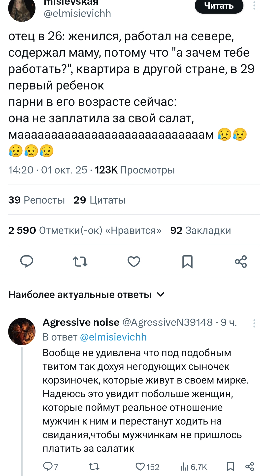 Ну она конечно говорит по факту. Но все сыночки корзиночки стали таковыми из-за того, что такие мужчины как ее папа ебали все подряд, а потом просто уходили из семьи. Типа да, согласен, что вот раньше мужики много делали, но была и другая сторона медали в виде женского воспитания и гиперопеки.