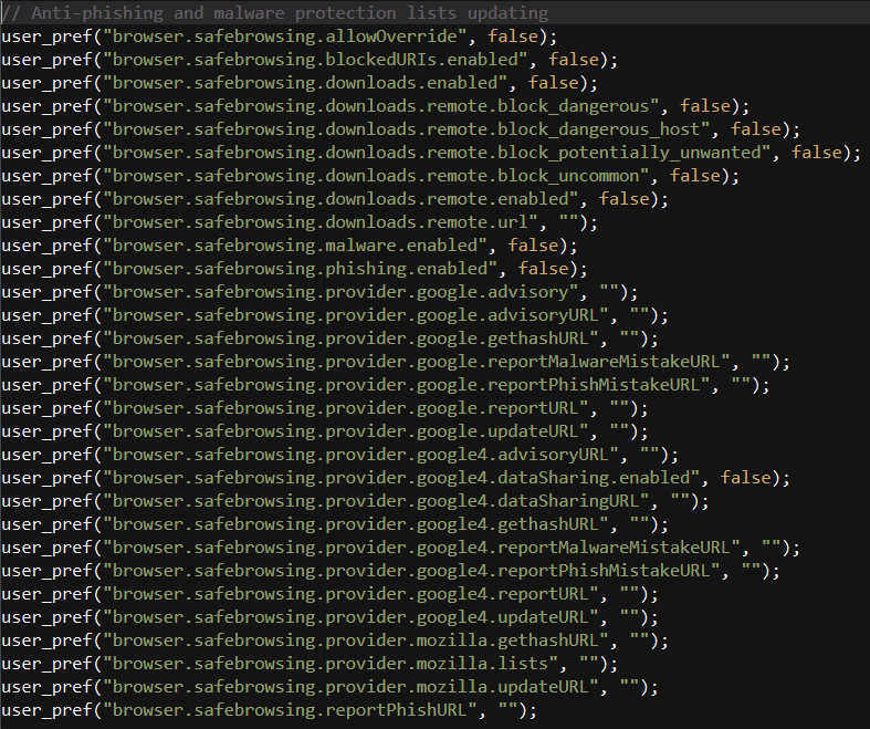 Продвинутые настройки user.js (лoмание на свой страх и риск, редактируйте под свои нужды):
