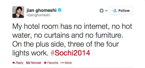 В случае с сочинской олимпиадой этот принцип упорно отказывается работать. Получаются какие-то странные выводы. «Да, мы притесняем геев, а ещё не в состоянии обеспечить подушками самую дорогую олимпиаду в истории массового спорта». «Мы не слышали про права человека, фильтры для воды и словарь английского языка». «У нас сажают за отрицание ВОВ, но зато мы не можем построить нормальный отель». Eat that, цивилизация!