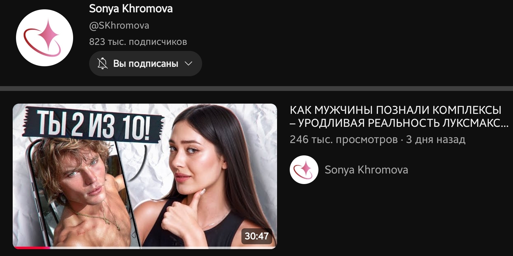Рекомендую к просмотру новый видос Сони Хромовой про луксмаксеров, инцелов, стейси и чедов.