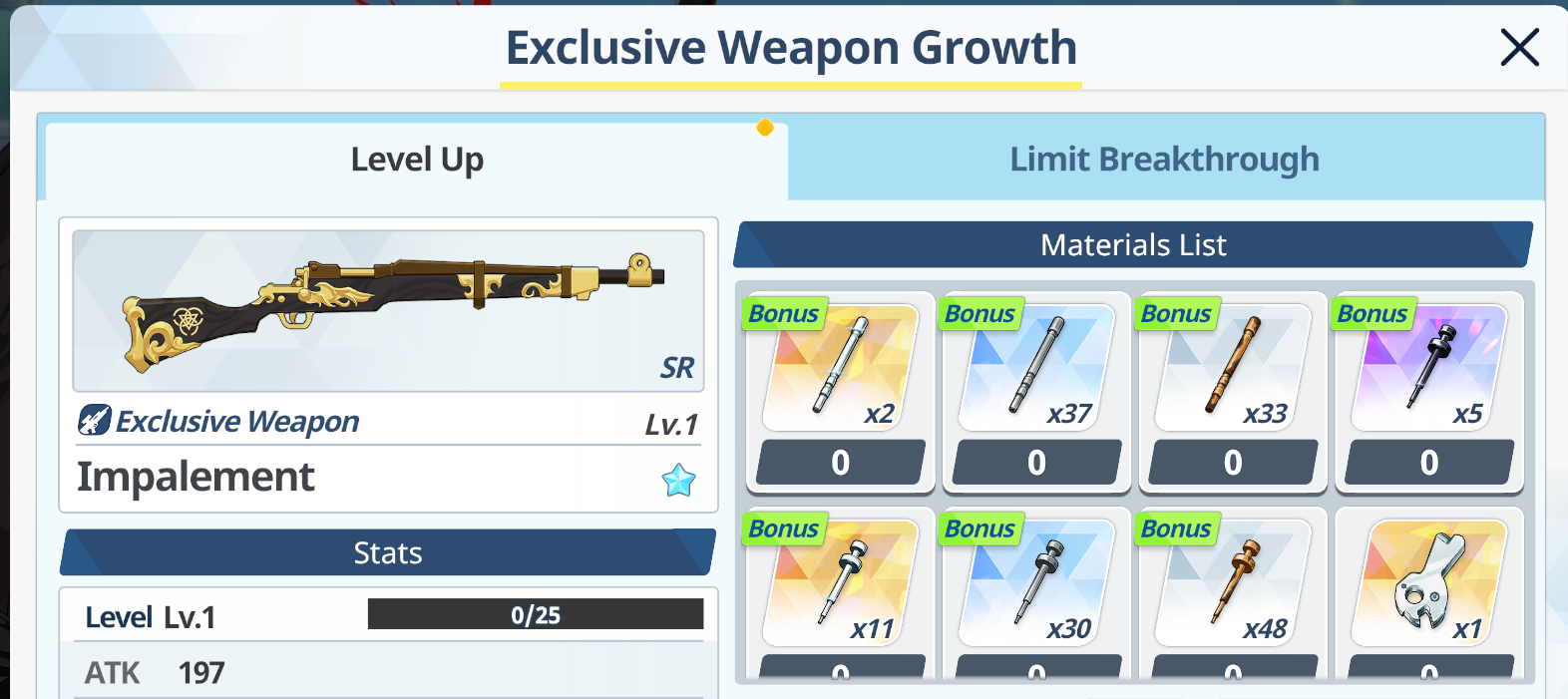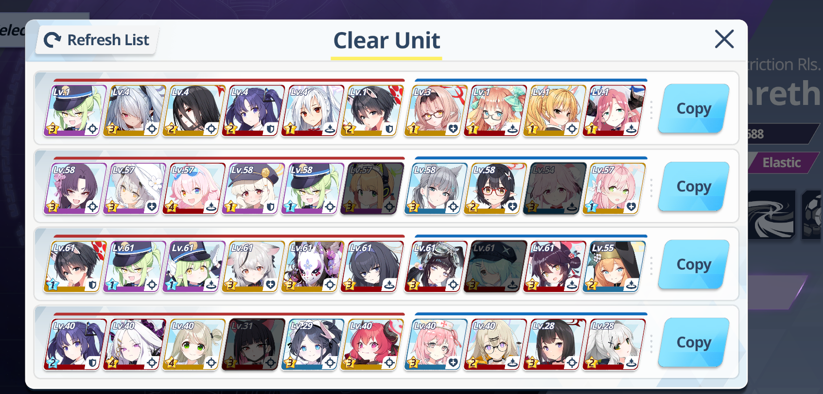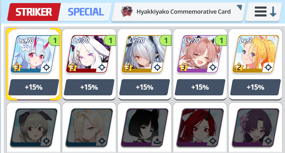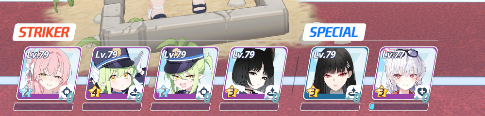 Ну смотри, первые на очередь кого одевать - страйкеры, причём там не обязательно всех обмазывать максимальным тиром, ДД одеваешь на дамаг, танкам ХП и защиту, то же и со спецами - Хибики, например, нужны шмотки на ап дамага, а вот Серине - нет, ей нужны на хил.